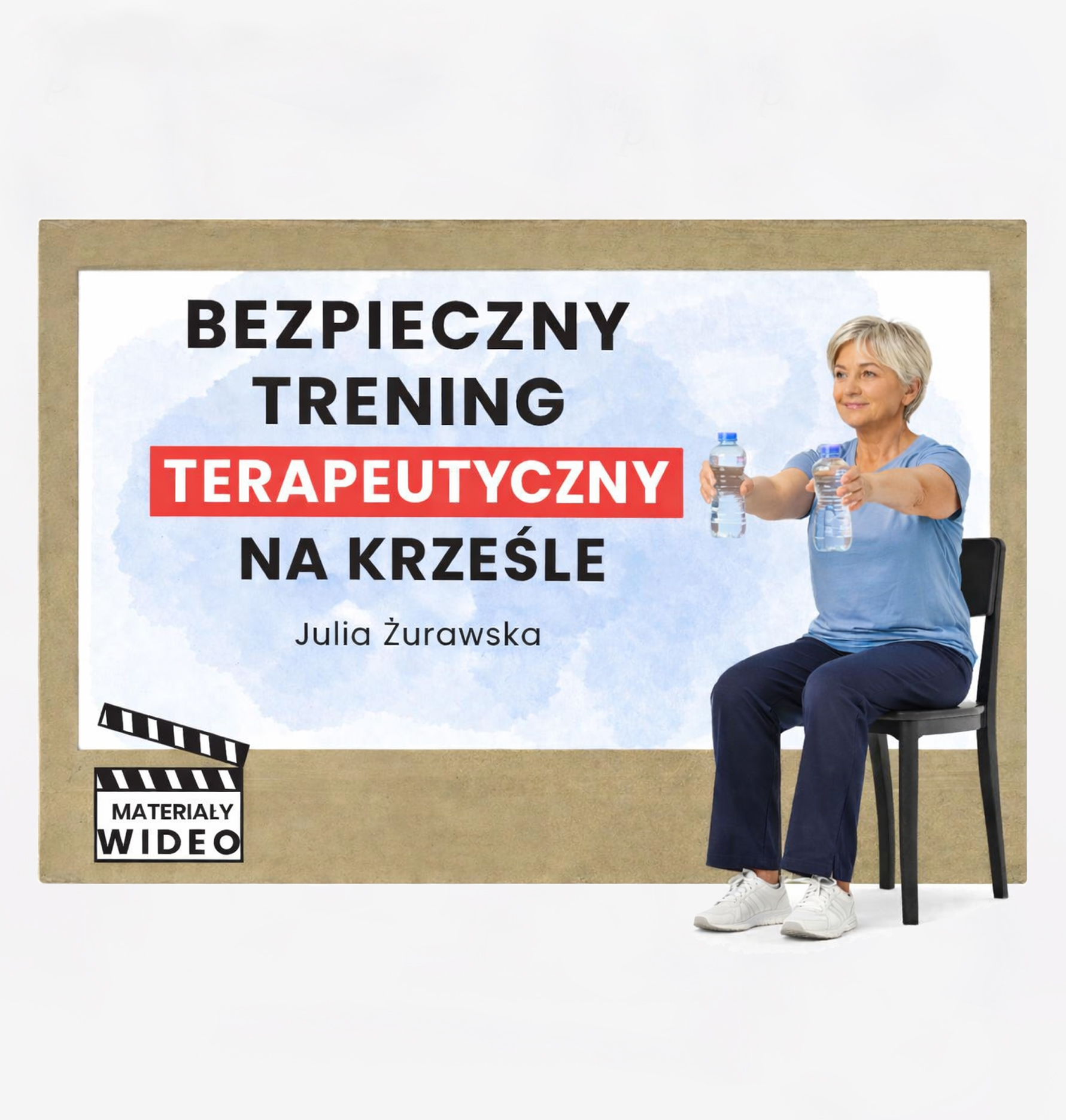 - Plik PDF „Bezpieczny trening terapeutyczny na krześle – ZANIM ZACZNIESZ”, z którego dowiesz się, jak prawidłowo korzystać z programu i maksymalnie wykorzystać jego potencjał.